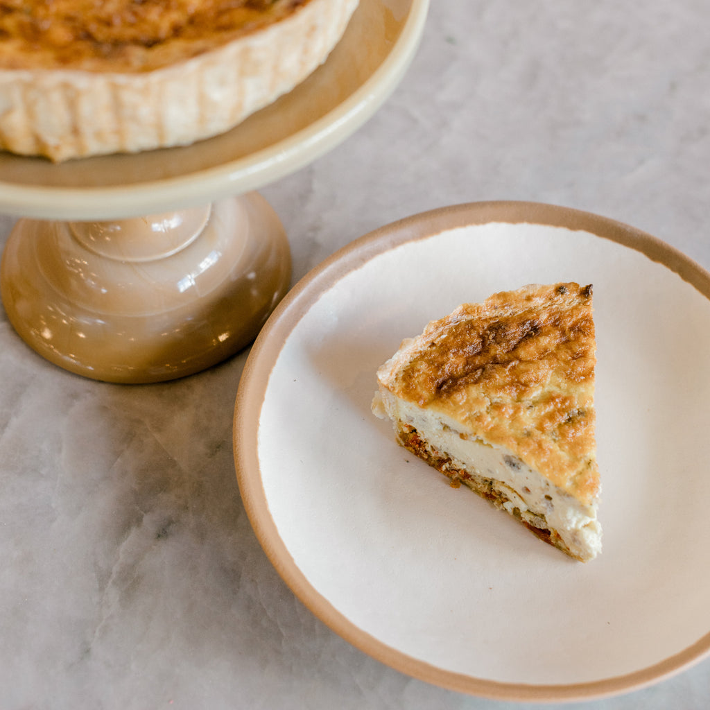 Our quiche is made from scratch with a rich, savory filling and baked to a smooth, custard-like texture. Available in both vegetarian and meat options, it’s a versatile favorite that works just as well for a quiet morning as it does for a shared table.